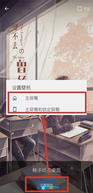 3、待加载完成后,点击【设置壁纸】,依据自身需求选择仅主屏幕,或是主屏幕与锁定屏幕同时设置。