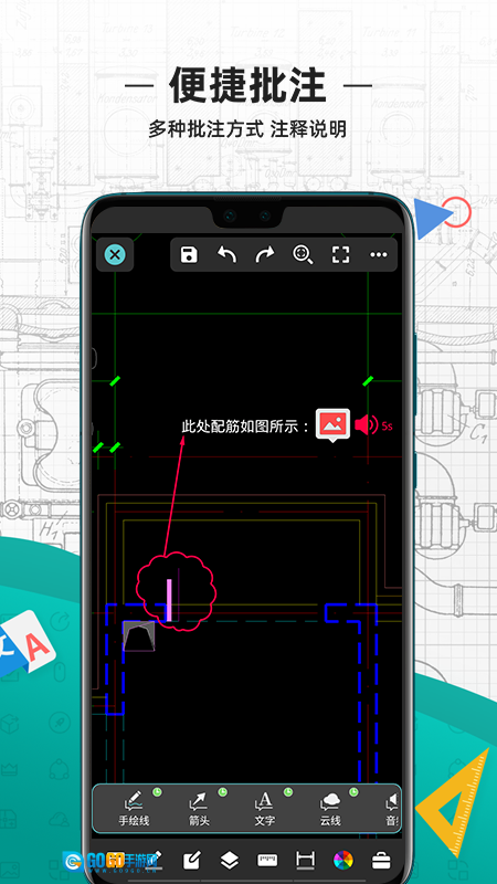 3. 图纸批注:在图纸上添加语音、照片或文字批注,方便与他人交流和协同工作。