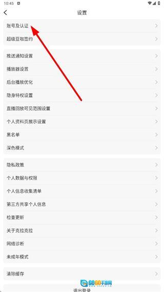 3、在设置里,点击【账号及认证】选项,进入对应的设置页面。