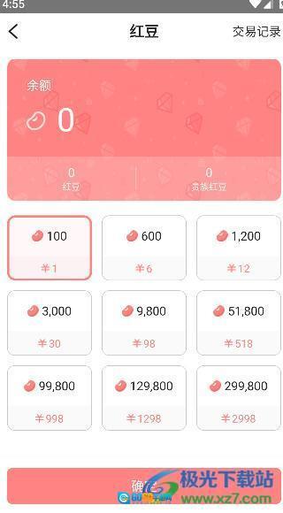 5、红豆充值页面一元即可获得100红豆,支持微信和支付宝两种支付方式。