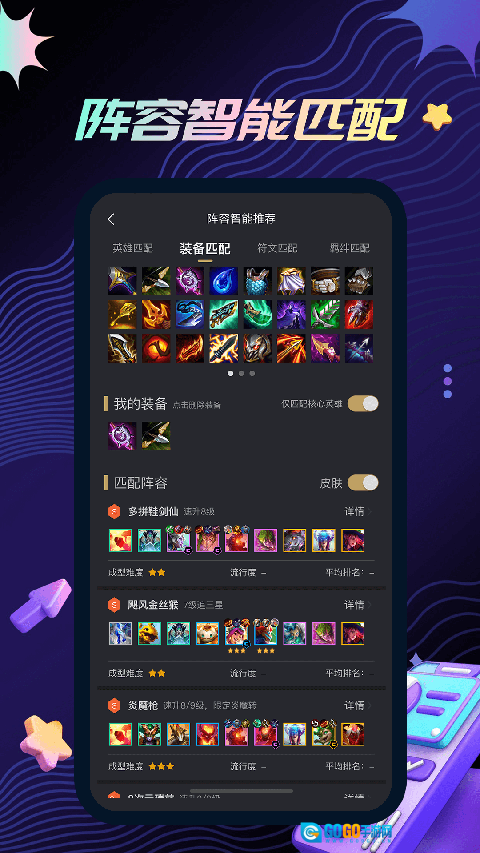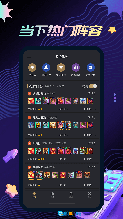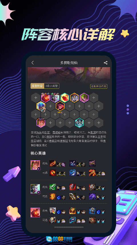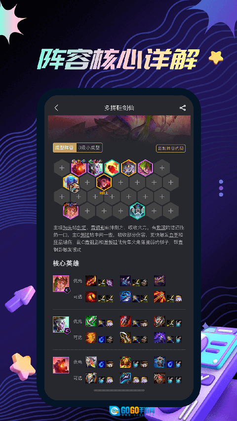 你可以在这里模拟英雄站位、分配装备、搭建羁绊,研习打造最强阵容的策略。