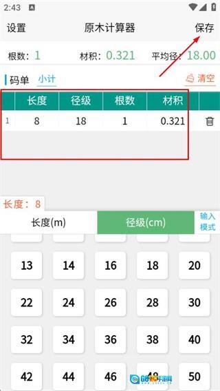 2、在这个页面中,输入原木的长度与径级数据,完成数据的录入工作。