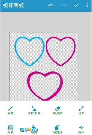 集成画笔、手型工具、橡皮擦、线条、形状、填充、喷雾器、光标、文本、图章、变形、导入图片等各种绘图工具