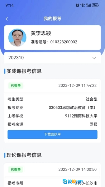 8.报考信息查询:考生可查看已报考科目的具体信息,如考试时间、地点等内容。