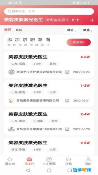医聘网专注于为医美医护行业搭建高效便捷的招聘求职桥梁。依托智能推荐算法与即时沟通工具,用户能够轻松获取最新岗位动态,一键完成简历投递。平台致力于促成医疗美容机构与求职者之间更快速、精准的双向匹配,助力双方建立理想的合作关系,推动行业整体效率与发展水平的提升。即刻登录医聘网,开启您的医美职业新征程!