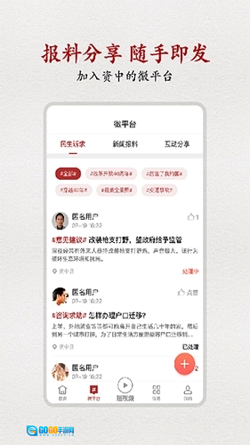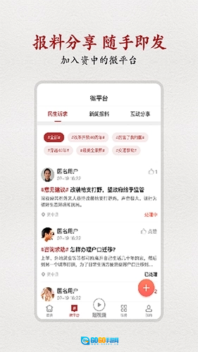 5、设有民生诉求、新闻爆料、互动分享三大专区,可实时了解专区内的相关信息。