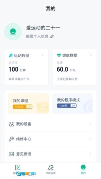 2、查看自身运动数据信息,运动时点击启动,实时记录运动数据;