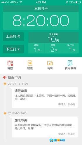 这里还支持在线考勤打卡,能随时记录自己的考勤情况。