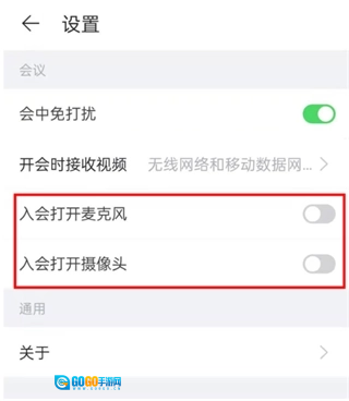 3、为确保会议顺利进行,建议您点击右上角的齿轮图标进入设置界面,将“入会自动开启摄像头”和“入会自动开启麦克风”这两个选项调整至关闭状态。