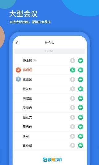 3、把企业的所有用户精密地连接起来,以此提升办公质量,并且会议人数的上限较高。