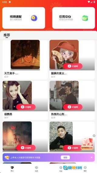 3、进入首页后,平台推荐的有缘人信息便会呈现,你可以轻松地向他们打招呼。
