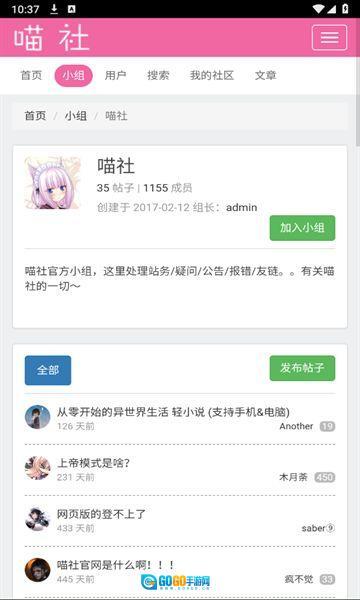2、接着就可以进入到页面中看到许多二次元小组了。