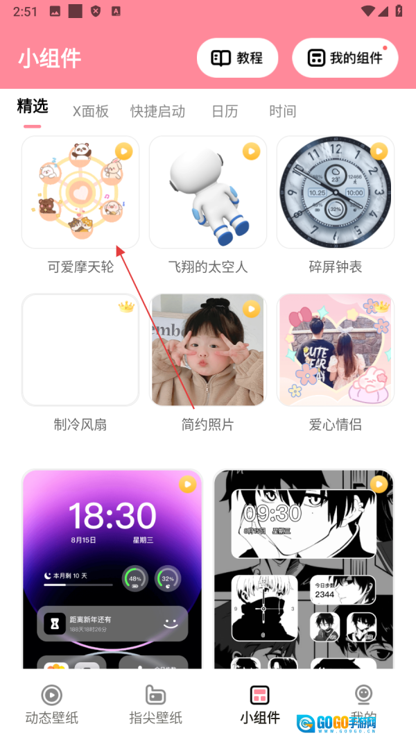2、进入小组件页面后,找到并点击【可爱摩天轮】,即可进入该组件的设置页面。