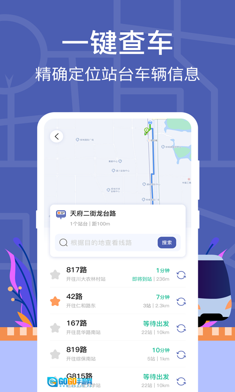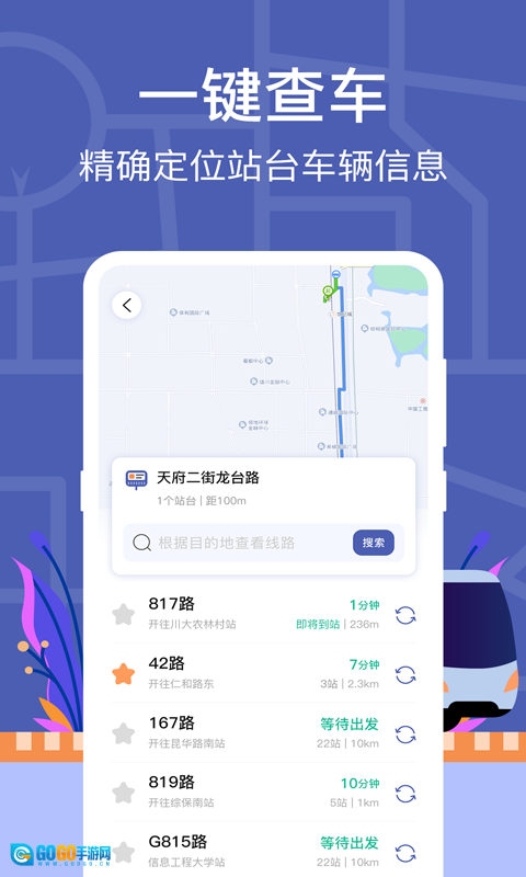 1.随时随地都能查询公交车距离你还有几站,为你提供更合理的出行方案,可随时使用
