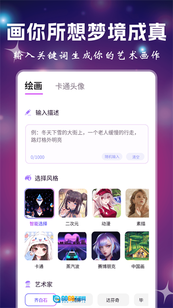 超高清4K画质,尽显AI画家的无限魅力,为您打造独一无二的视觉盛宴!更支持长达300字的关键词输入,让创作灵感不受字数限制。