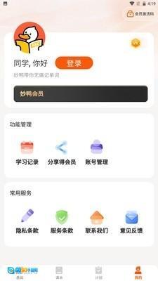 1、启动妙鸭单词应用,待进入主界面后,点击底部导航栏中的“我的”选项。