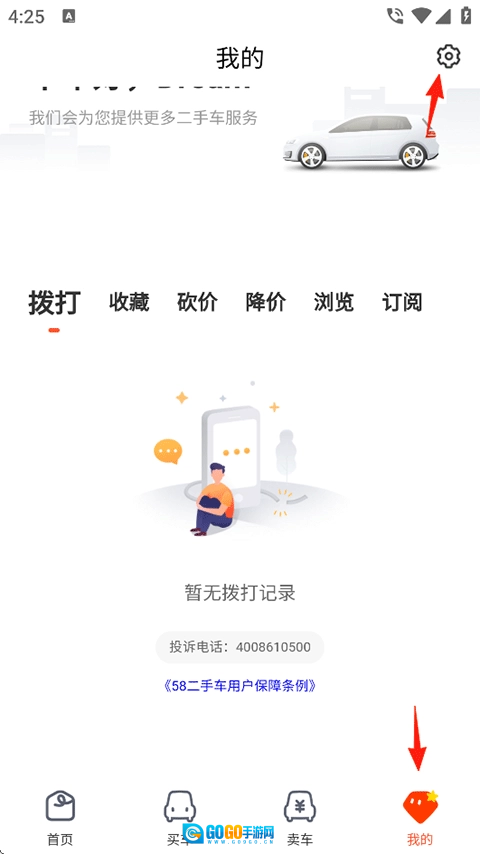 1、打开人人车二手车二手车交易软件,点击我的-右上角设置图标;