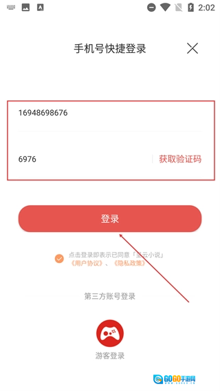 4、在【手机号快捷登录】界面,输入手机号及获取的验证码,勾选协议后点击【登录】,也可选择第三方或游客登录方式。