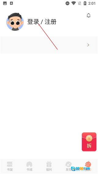 3、进入【我的】页面后,点击顶部的【登录/注册】区域,即可进入登录相关操作界面,在此过程中还能查看该页面内的功能入口。