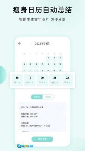 日历打卡的方式,能帮您更有规律、更有条理地管理体重。