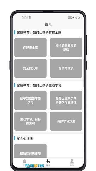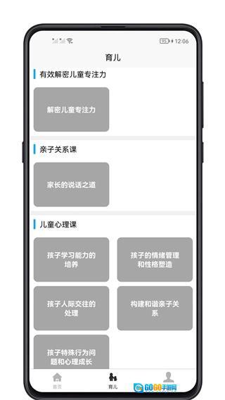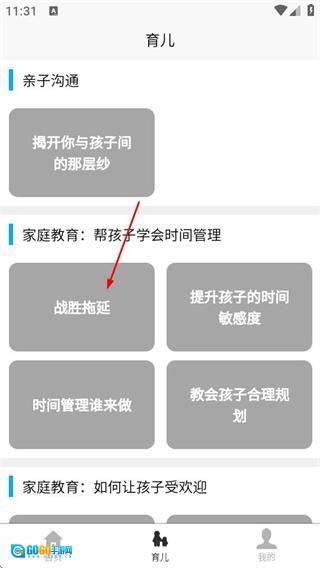 2、在育儿页面选择目标课程内容,进入对应课程列表页。