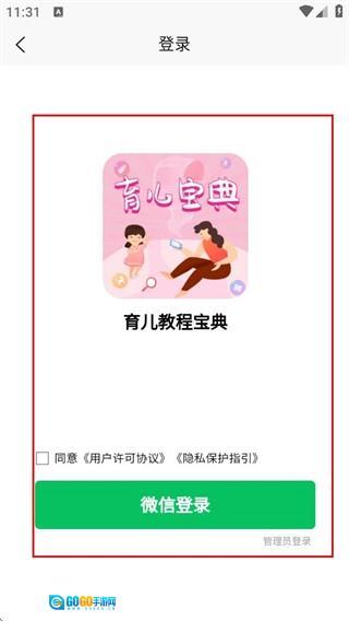 1、在育儿宝典首页点击底部育儿选项,进入育儿页面。