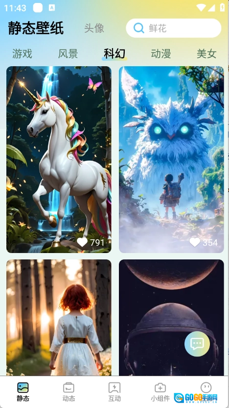 3、根据场景的不同来应用壁纸作品,免费开始壁纸作品解锁设置