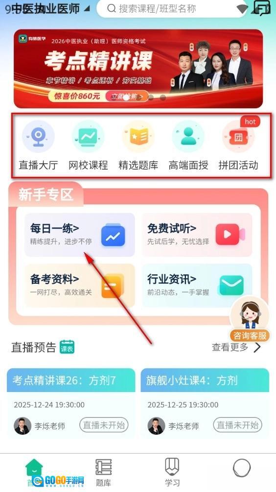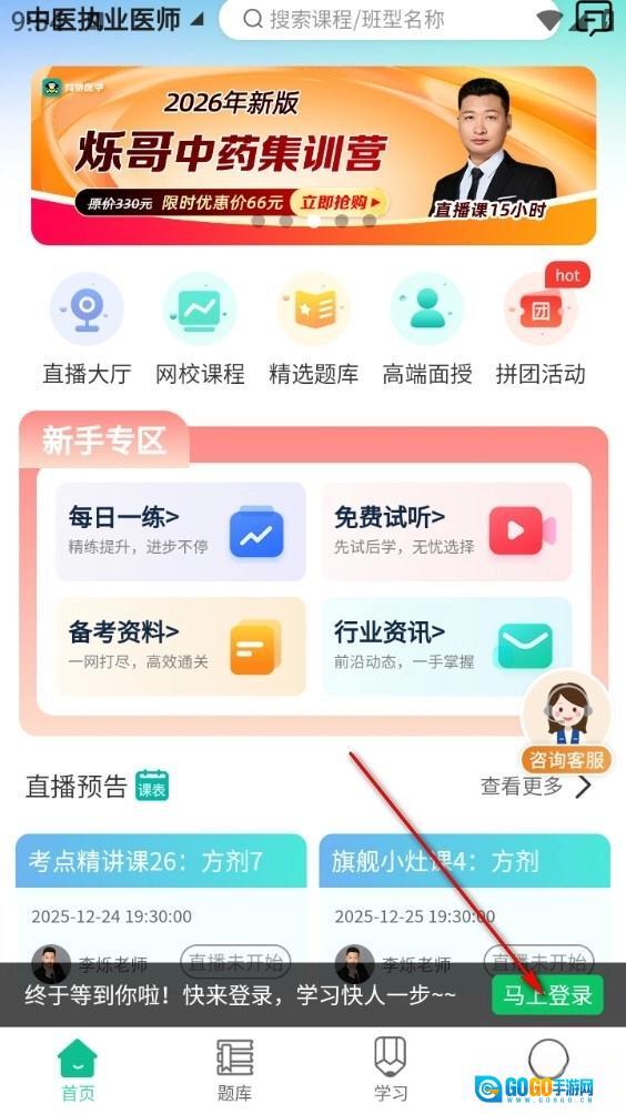 4、点击首页选择学习方式,可选直播、网课、资料分享等