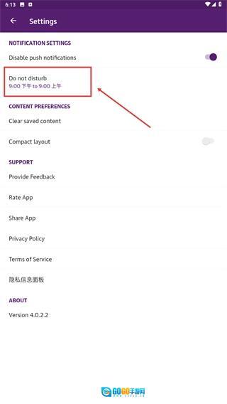 2、在设置页选择【Do not disturb(免打扰)选项】,进入免打扰设置界面。