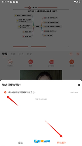 3、点击“缓存”选项,选中需要缓存的视频,接着点击“确认缓存”选项就可以了。