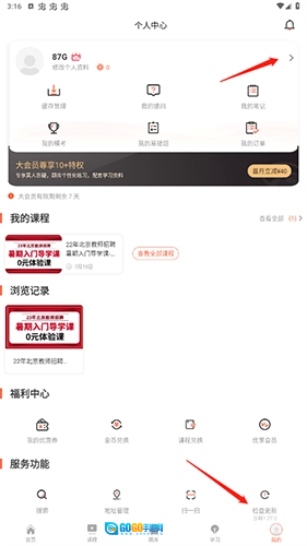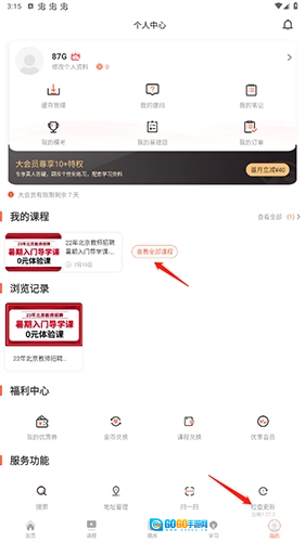 1、打开软件,点击底端的“我的”选项,然后点击“查看全部课程”选项。