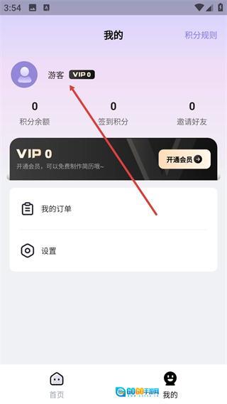 1、在首页点击底部导航栏的【我的】选项,可进入个人功能页面,查看积分、订单等信息。