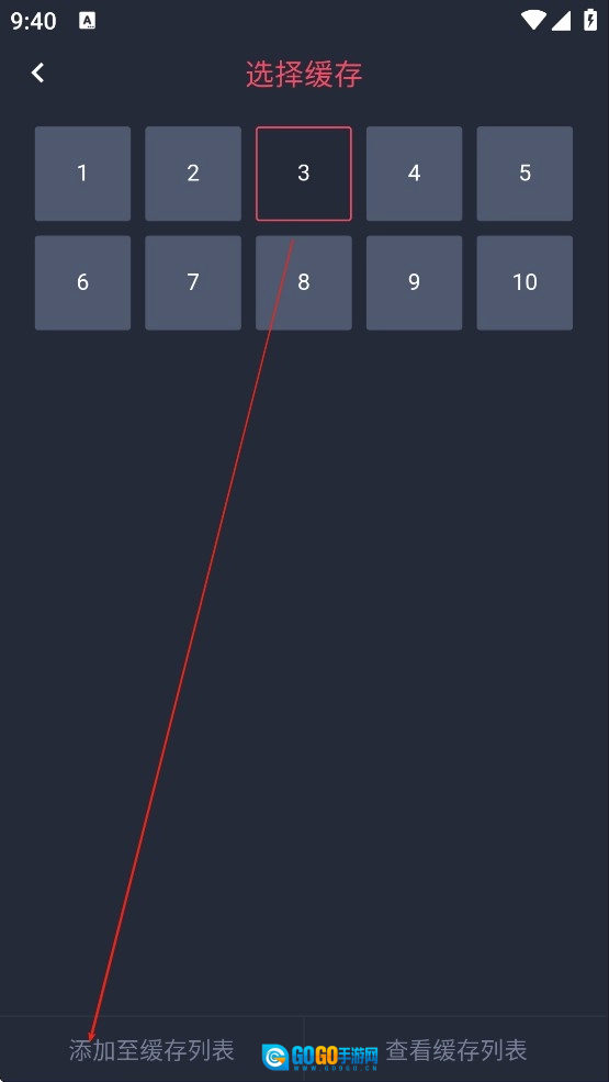 3、选择想要缓存的集数,然后点击添加至缓存列表。