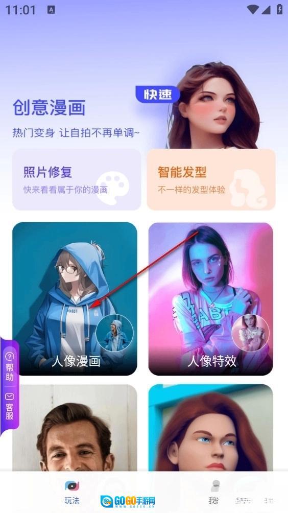 1、进入软件后选择人像漫画功能点进去