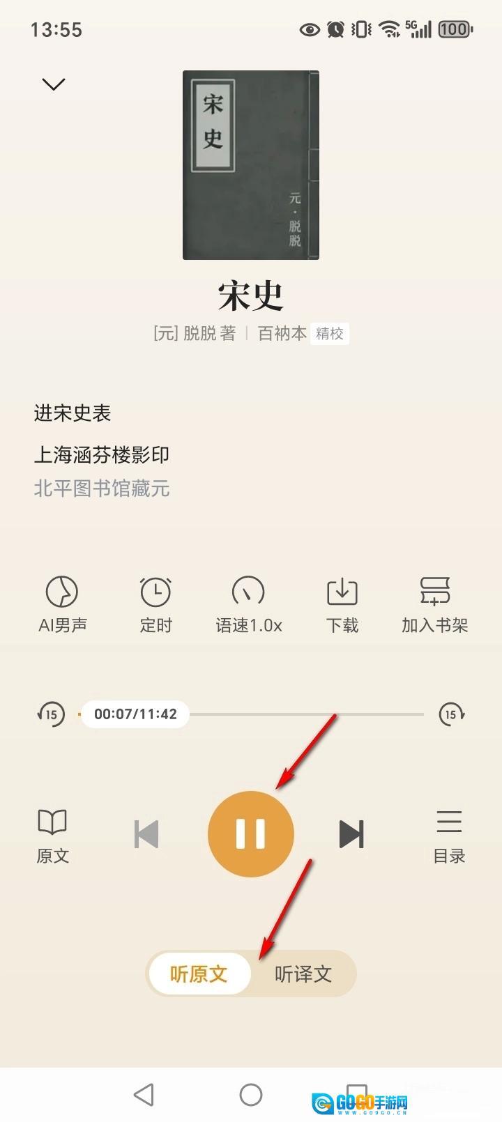 即可开始语音播报,可以听原文也可以听译文