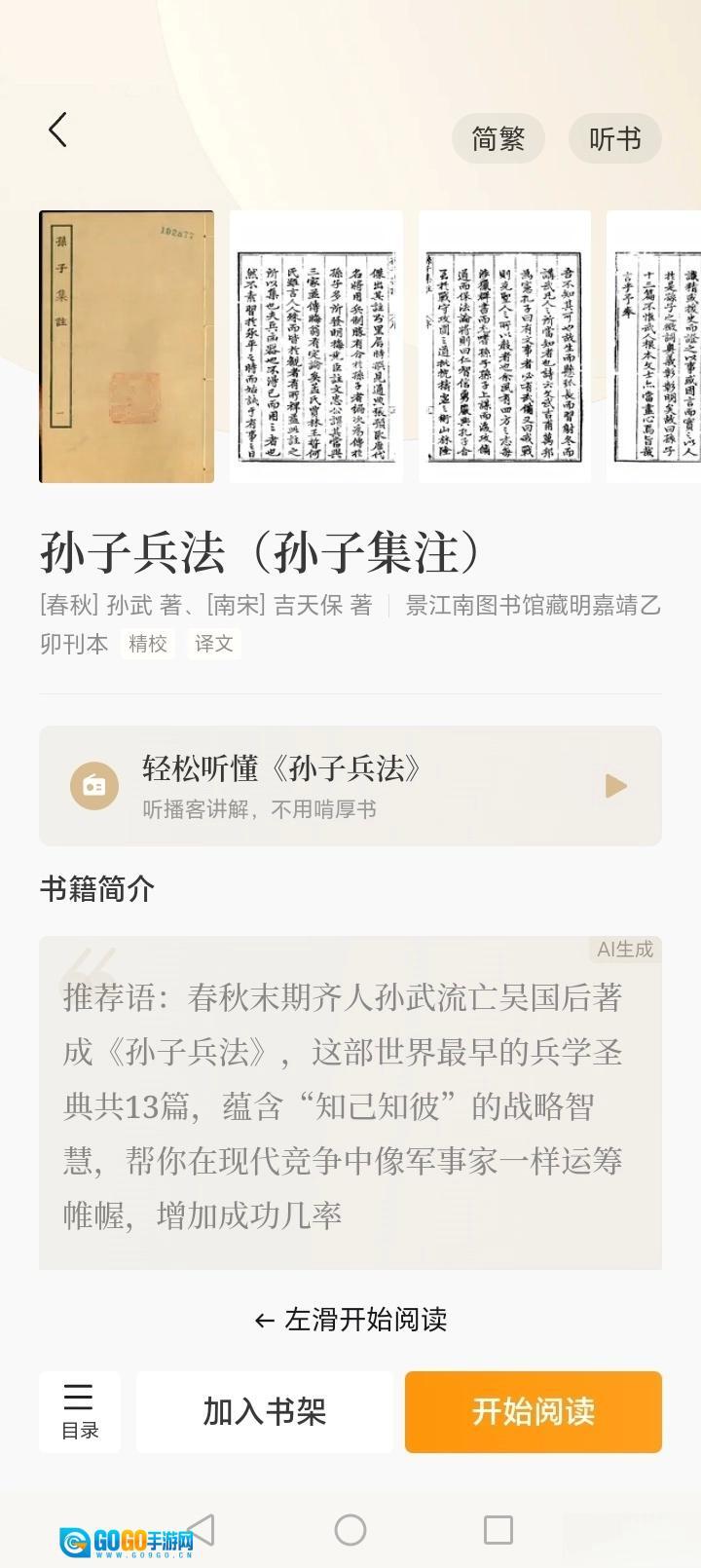 《识典古籍》是北京抖音信息服务有限公司开发的古籍阅读应用,平台汇聚了丰富的经典古籍资源,涵盖诗词、兵法、术数、哲学、易学、中医、地理等多个领域分类。用户可以从中挑选《三国演义》《孙子兵法》《周易》《本草纲目》《山海经》等各类典籍进行阅读,也能选择听书模式。