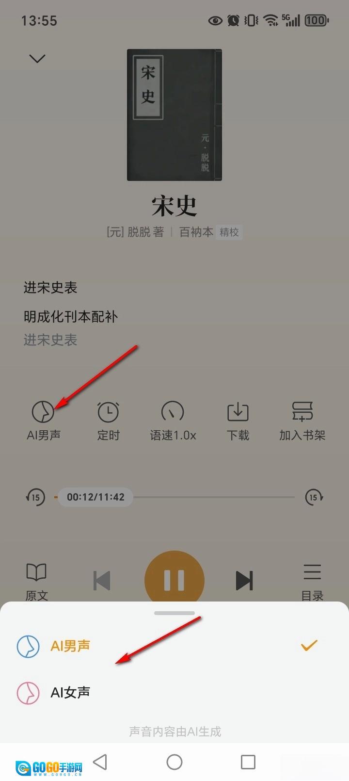 可以选择男声或者女声