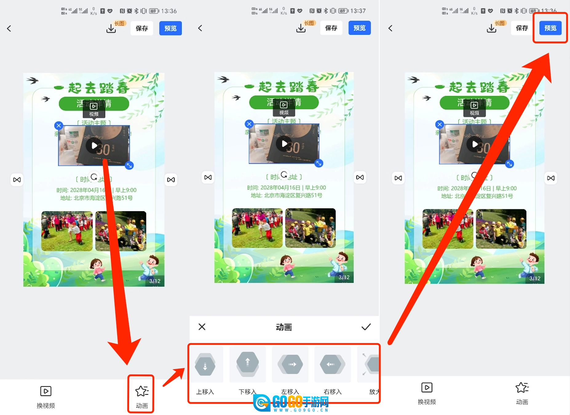 2、点击右上方的“预览”按钮,即可看到视频动画效果。