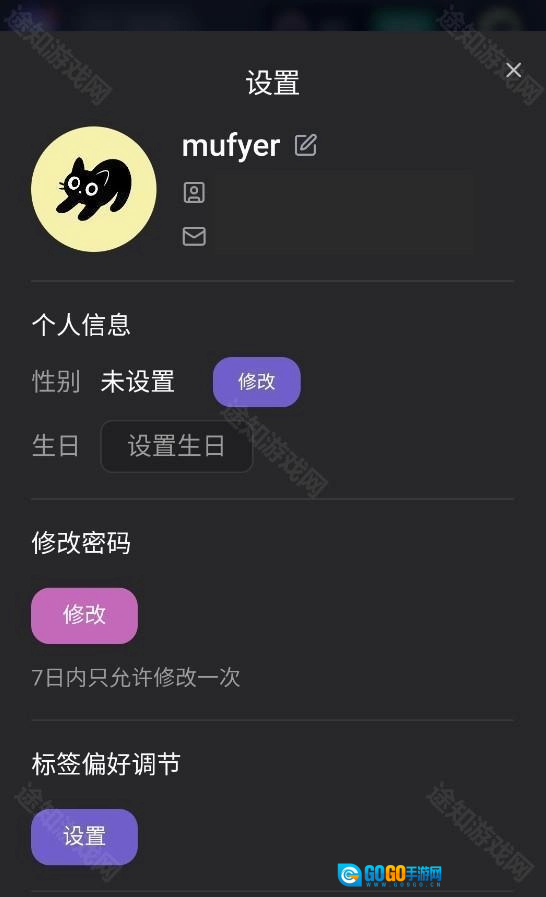 2、然后点击进入个人设置页面。
