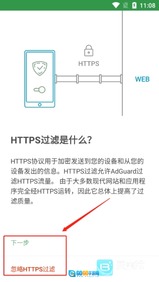 2、可以先了解HTTPS过滤,后选择“下一步”
