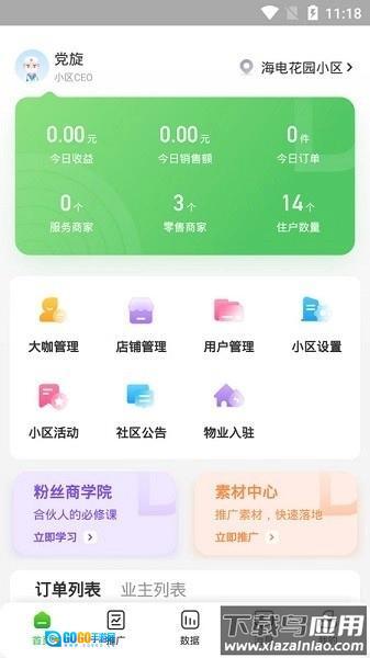 1. 按权限分级展示合伙人区域及小区销售数据;