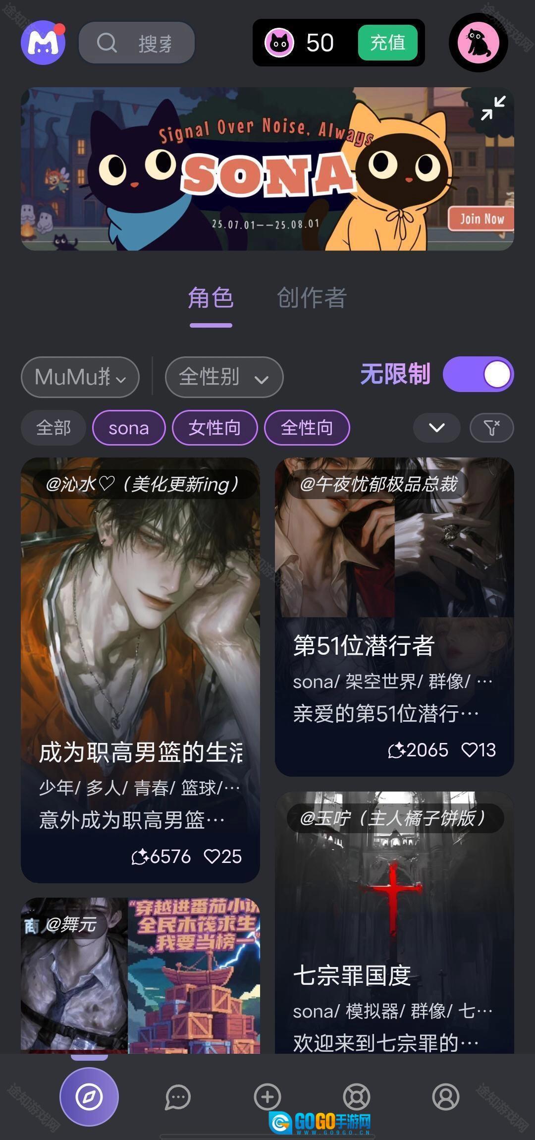 2、在界面里自由的筛选自己喜欢的角色
