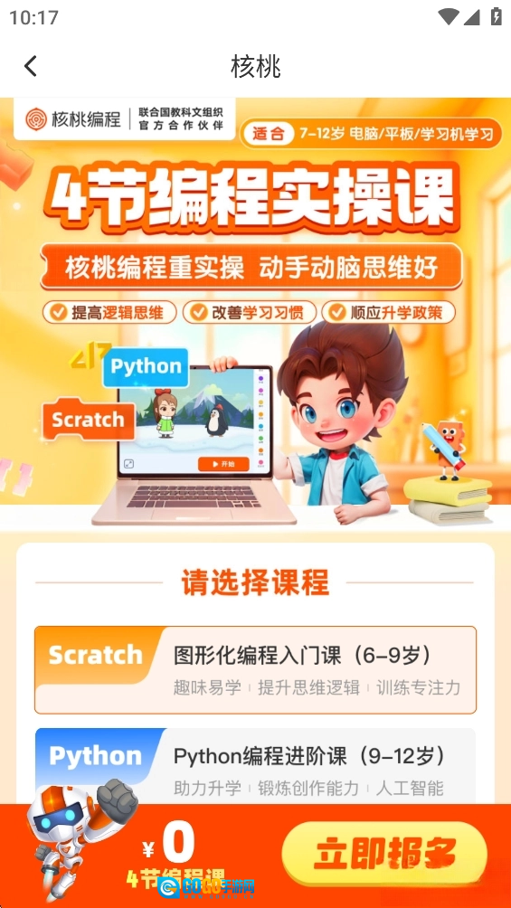 核桃编程家长端App是专为家长设计的少儿编程学习辅助平台。通过它,您可以清晰了解孩子的编程学习进度与课堂表现,接收课程提醒与学情报告,同时获取丰富的家庭共学资源,轻松陪伴孩子在趣味中掌握面向未来的编程思维与能力。