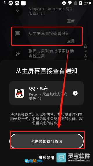 弹出通知选择后,选择到“niagara launcher”点击允许