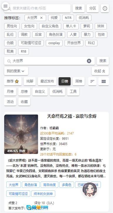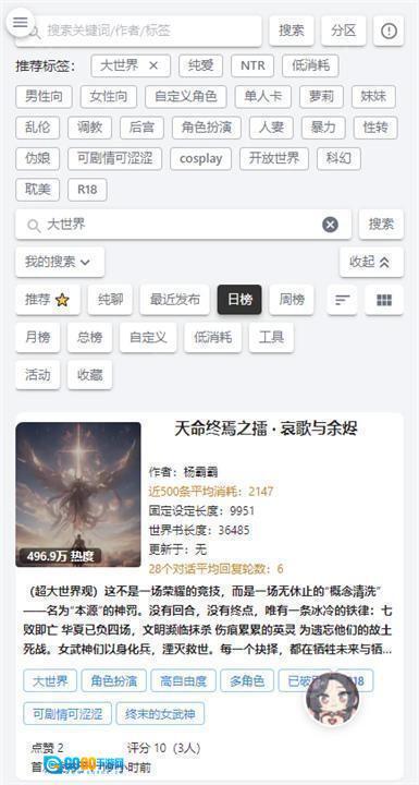1、覆盖“大世界”“NTR”“萝莉”等各类标签,助力用户精准找到感兴趣的内容。