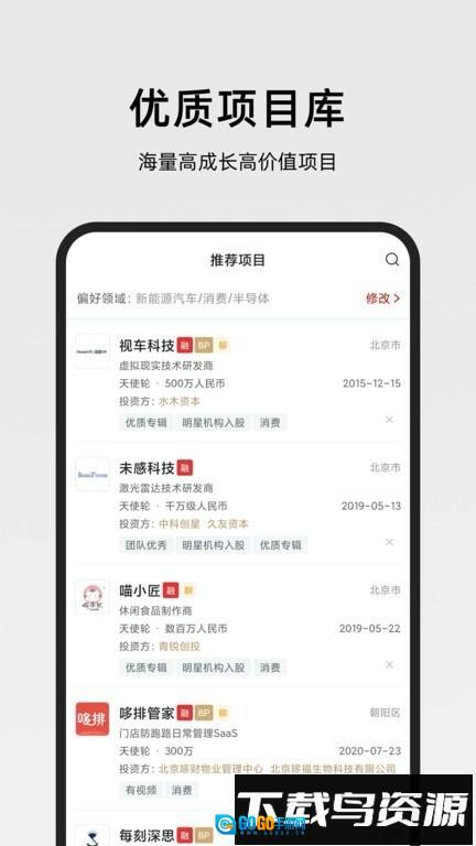 2、支持查看新能源汽车、半导体等热门领域在内的多个行业高价值成长型项目,助力用户及时掌握行业动态与关键信息;