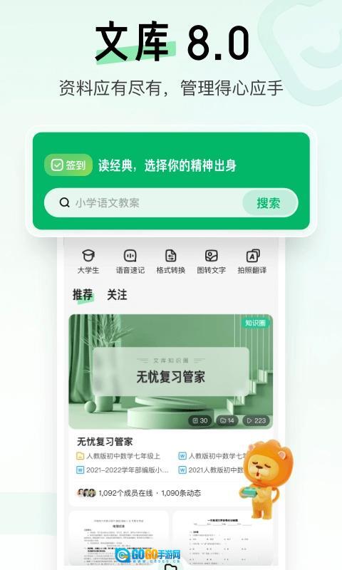 3.便捷文档管理:提供文档收藏、分类管理等功能,方便用户整理和查找文档。