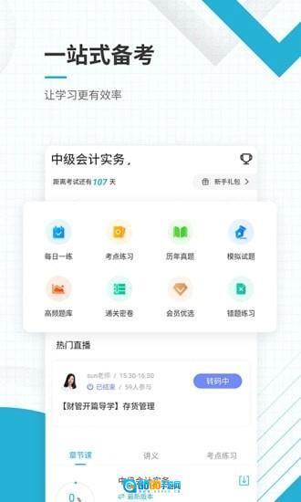 有想考中级会计的小伙伴,不妨试试这款中级会计职称准题库。平台上汇聚了大量中级会计相关考题,包含历年全部考试真题,大家可以随时在线刷题。此外,还有经验丰富的老师进行直播授课,助力小伙伴们轻松通过考试。