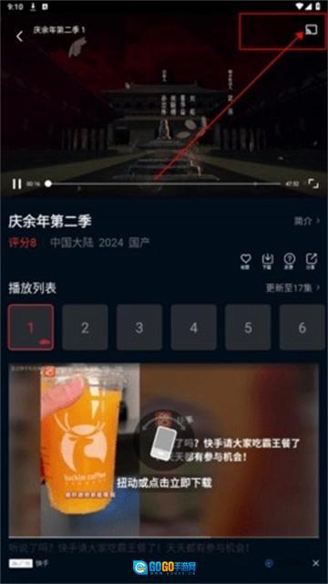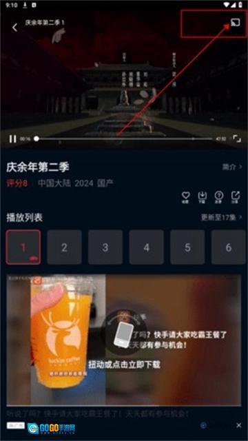 4、点击视频右上角箭头所示图标。
