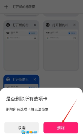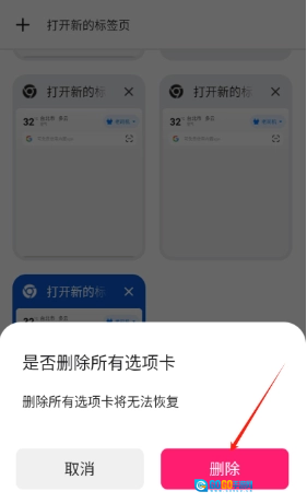 3、点击左下角垃圾桶图标,可删除所有选项卡。